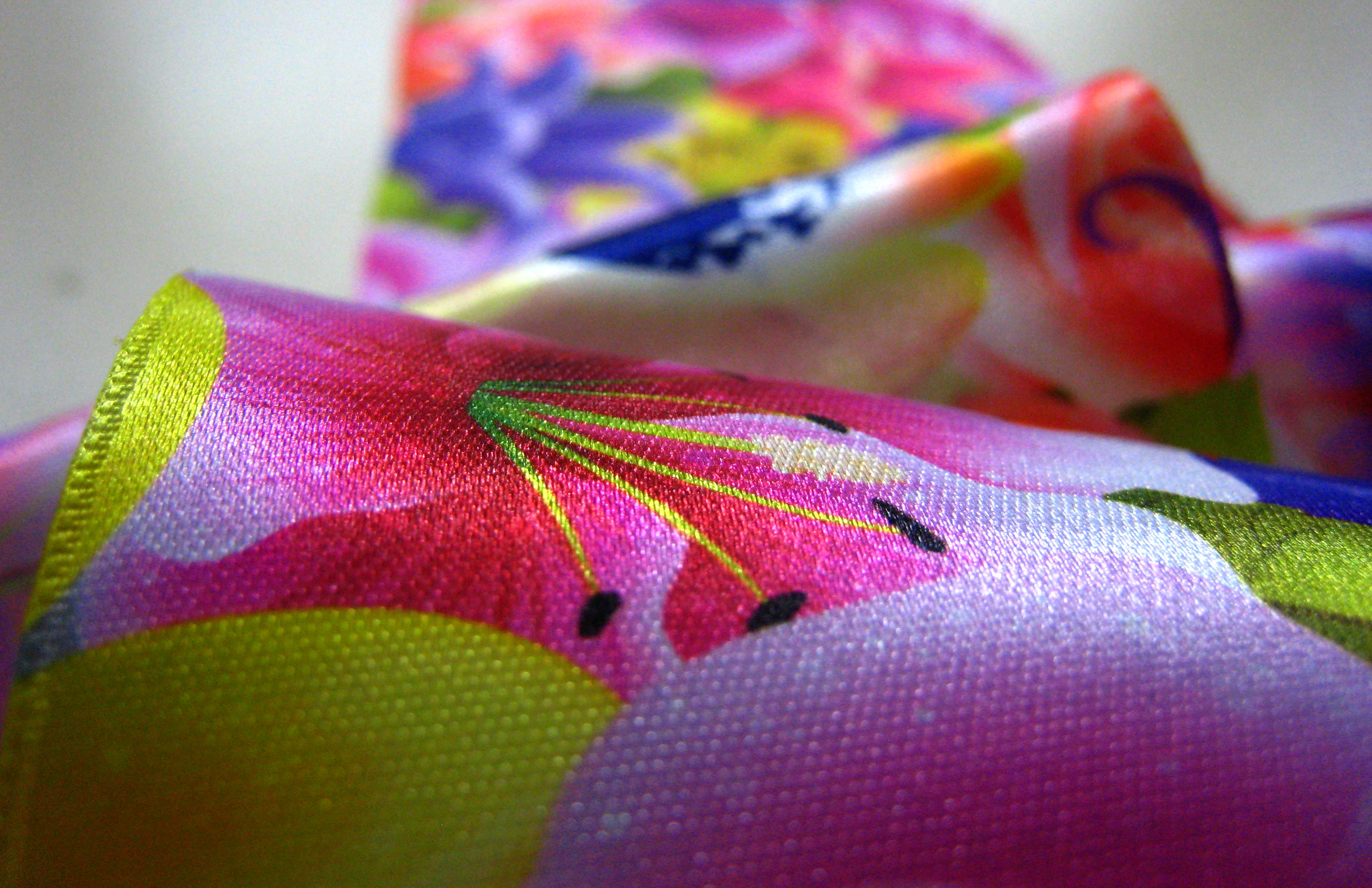Le satin à lisières est le type de ruban que nous utilisons le plus : disponible en standard en 8, 10, 15, 25, 38 et 50 mm (voire 100 mm), c'est cette matière qui offre le plus grand choix de teintes pour des quantités relativement faibles. N'hésitez pas à demander si vous avez besoin d'une matière différente (sangle, élastique, coton, jute, ...).